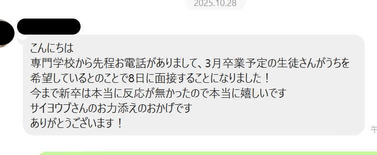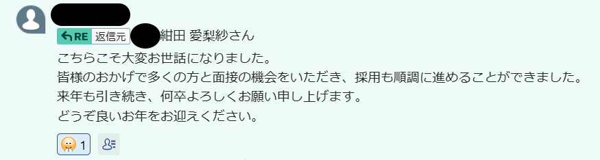 今まで新卒は本当に反応が無かったので本当に嬉しいです