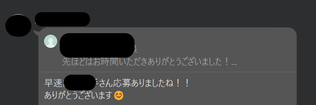別で法人採用HPから直接応募があった26新卒の方も**をご覧になって応募してくださいました!さすが反響がすごいです!ありがとうございます!